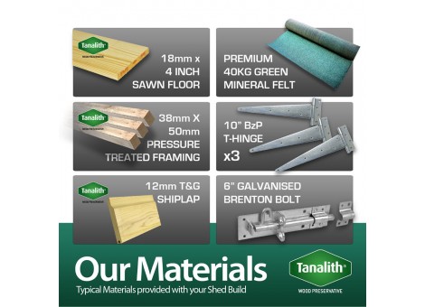 • All our buildings are manufactured with pressure treated tanalised timber on the outside of the building to help against rotting, fungal and insect attack